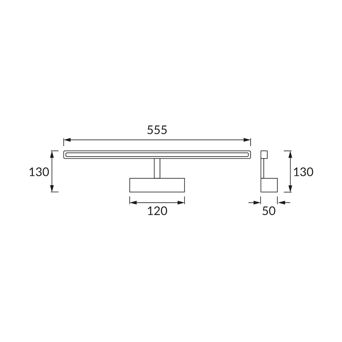 - Abmessungen (B x H x T): 555 x 50 x 130 mm