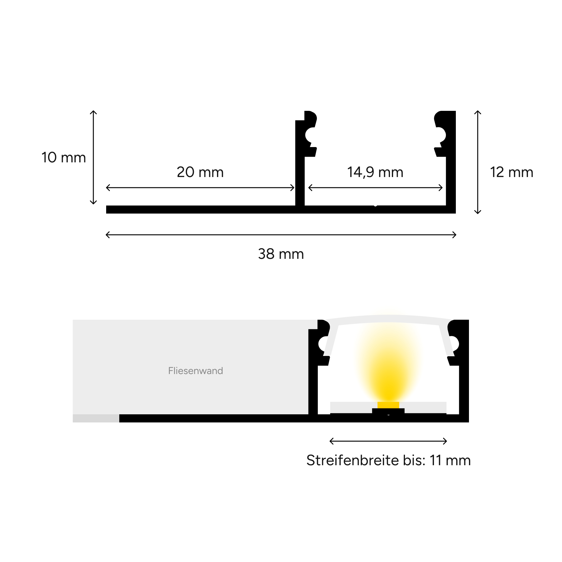 Aluminium LED Unterputz Profil in Wunschlänge,...