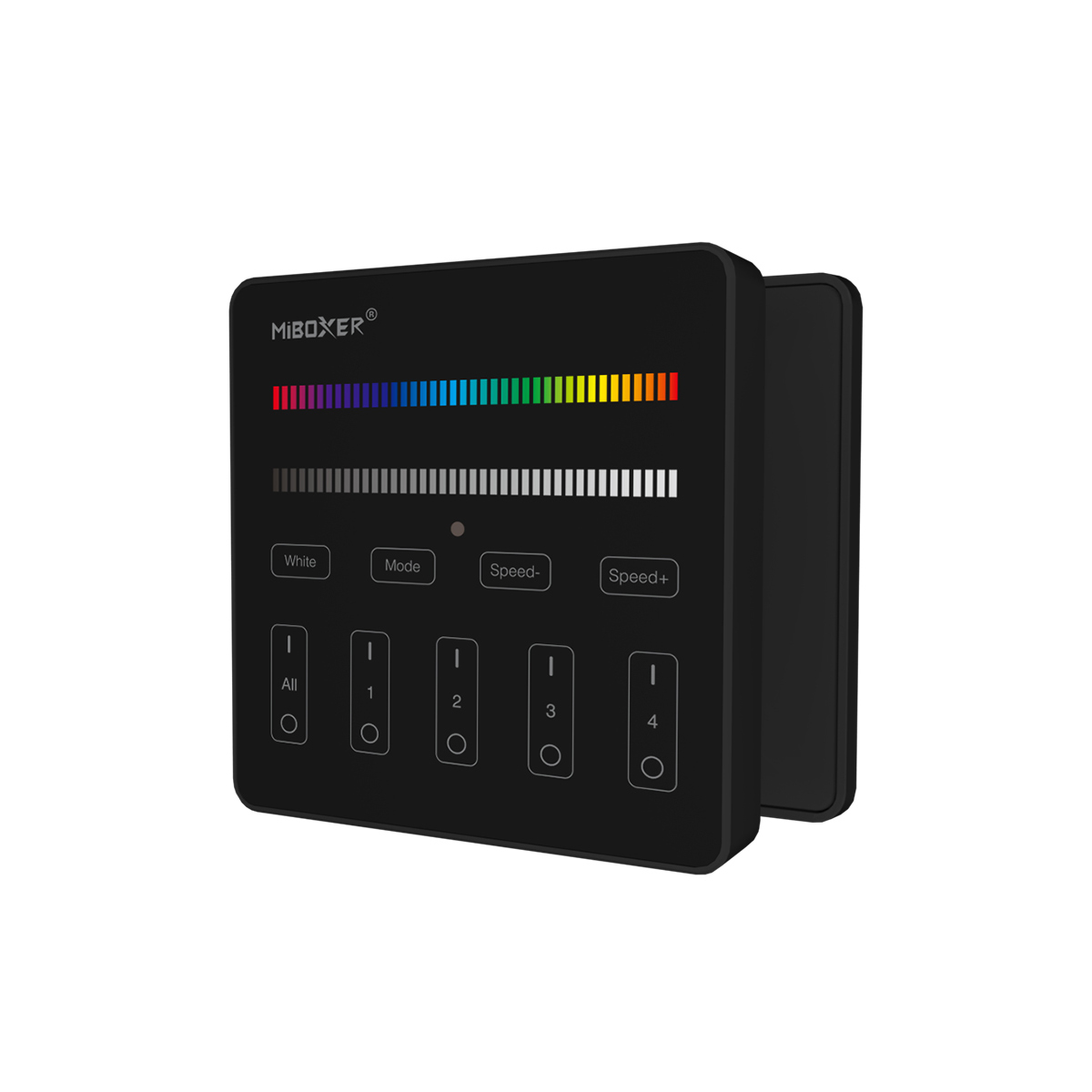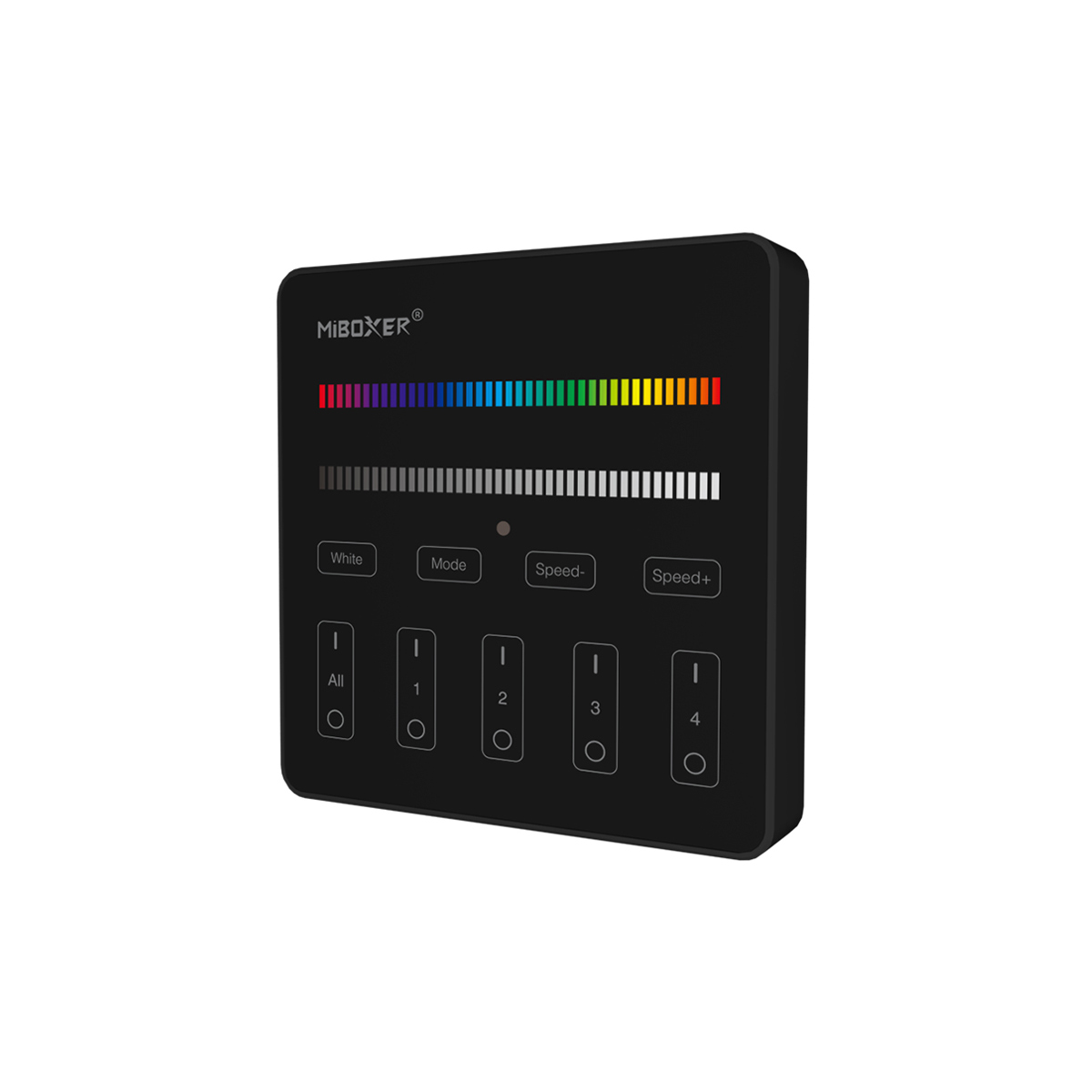 Die G-33-BLK Fernbedienung verwendet die weltweit verbreitete 2,4 GHz-Frequenz, die GFSK-Steuerungsmethode, die sich durch geringen Stromverbrauch, Übertragung über große Entfernungen, geringe Interferenzen und hohe Kommunikationsgeschwindigkeit auszeichnet. Sie kann die Farbe, Farbtemperatur, Sättigung, Laufgeschwindigkeit, sowie die Helligkeit über den Controller steuern.