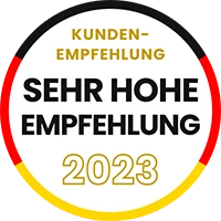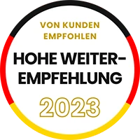 Welche Unternehmen von ihren Kunden besonders häufig weiterempfohlen werden, hat die Ratingagentur ServiceValue erneut in Kooperation mit DEUTSCHLAND TEST untersucht und wir waren auch dieses Jahr wieder mit dabei. Die Ergebnisse der Studie „Von Kunden empfohlen” wurden im Magazin FOCUS (Ausgabe 32/23) veröffentlicht.