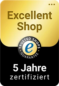Wir geben alles für die Sicherheit und Zufriedenheit unserer Kundinnen und Kunden und wurden dafür mit dem Excellent Shop Award von Trusted Shops ausgezeichnet! Diesen Award erhalten nur Onlineshops, die seit 5 Jahren zertifiziert sind, eine konstant gute Bewertungsnote haben und die strengen Qualitätskriterien von Trusted Shops erfüllen.