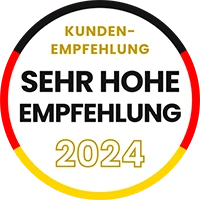 Welche Unternehmen von ihren Kunden besonders häufig weiterempfohlen werden, hat die Ratingagentur ServiceValue erneut in Kooperation mit DEUTSCHLAND TEST untersucht und wir waren auch dieses Jahr wieder mit dabei. Die Ergebnisse der Studie „Von Kunden empfohlen” wurden im Magazin FOCUS (Ausgabe 32/24) veröffentlicht.