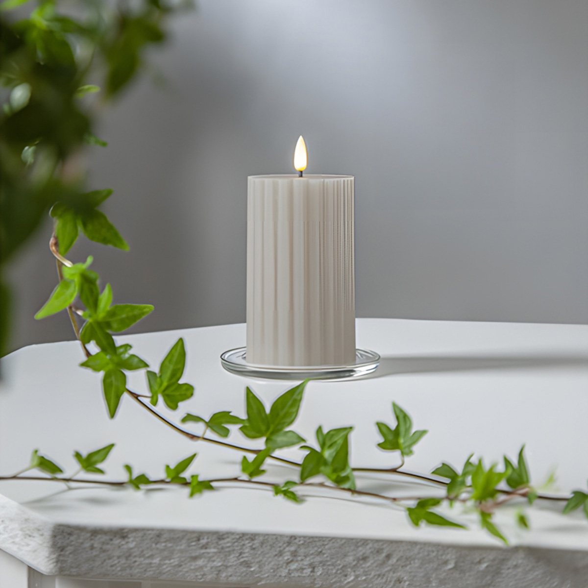 Flamme Stripe - Kerze für innen - Beige - Höhe: 15,0 cm - Batteriebetrieb - Timer - flackernd