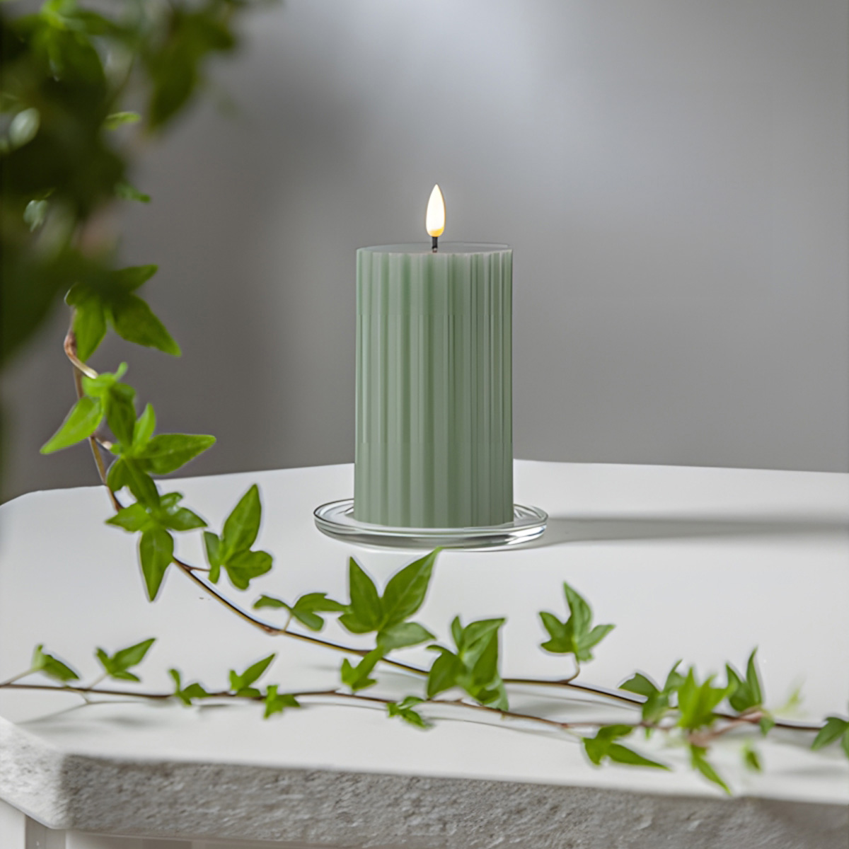 Flamme Stripe - Kerze für innen - Grün - Höhe: 15,0 cm - Batteriebetrieb - Timer - flackernd