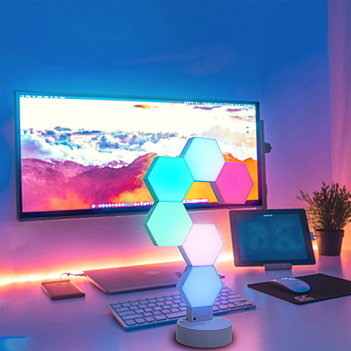 Hexagon LED Desktop Panel Set - 6er Set - Tuya App, Sprachsteuerung über Alexa und Google Home