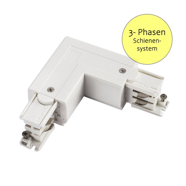 L - Verbinder für 3-Phasen-Stromschienensystem - Schutzleiter außen rechts, weiß