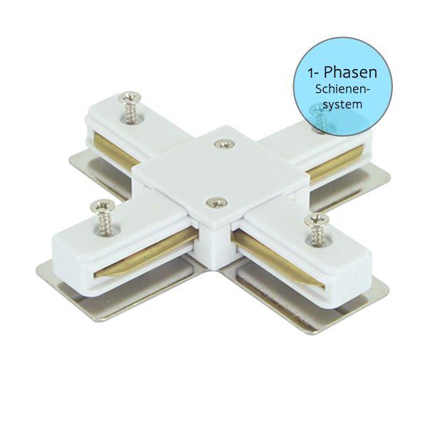Mit unserem X-Verbinder lassen sich 4 der 1-Phasen-Schienen zu einem Tracklightsystem verbinden.